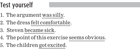 The following verb phrases with linking verbs are different in structure as well as in meaning from verb phrases with action verbs: