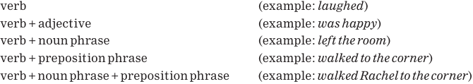 To sum up, we list below the kinds of verb phrases we’ve discussed: