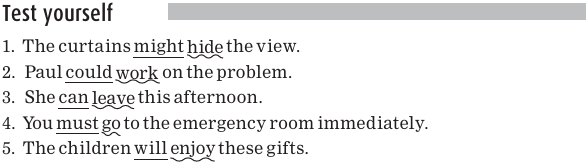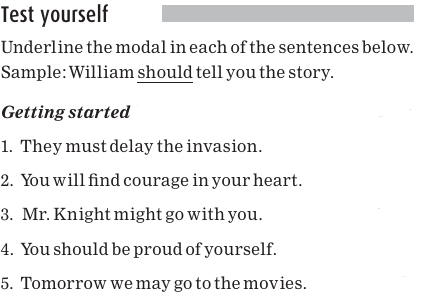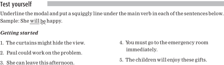 One kind of helping verb is called a modal. A modal adds information, such as possibility, necessity, or requests, to the verb that follows. The modals are underlined in the sentences below: