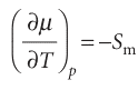The temperature dependence of the Gibbs energy is expressed in terms of the entropy of the system by eqn 3.50 ((∂G/∂T) p =−S). Because the chemical potential of a pure substance is just another name for its molar Gibbs energy, it follows that