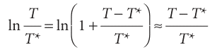 This equation was originally obtained by yet another Thomson—James, the brother of William, Lord Kelvin. When T is close to T*, the logarithm can be approximated by using