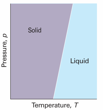 Fig. 4.13 A typical solid–liquid phase boundary slopes steeply upwards. This slope implies that, as the pressure is raised, the melting temperature rises. Most substances behave in this way.