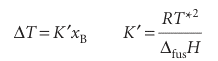 where ∆Tis the freezing point depression, T* − T, and ∆fusH is the enthalpy of fusion of the solvent. Larger depressions are observed in solvents with low enthalpies of fusion and high melting points. When the solution is dilute, the mole fraction is proportional to the molality of the solute, b, and it is common to write the last equation as