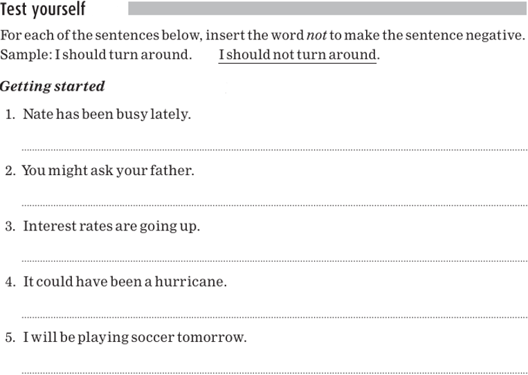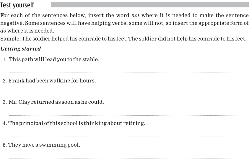 Here are some negative sentences, with not underlined and the helping verb in bold.