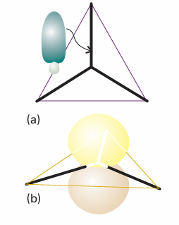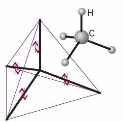 Fig. 11.8 Each sp3 hybrid orbital forms a σ bond by overlap with an H1s orbital located at the corner of the tetrahedron. This model accounts for the equivalence of the four bonds in CH4.