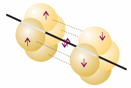 Fig. 11.12 A representation of the structure of a triple bond in ethyne; only the π bonds are shown explicitly. The overall electron density has cylindrical symmetry around the axis of the molecule.