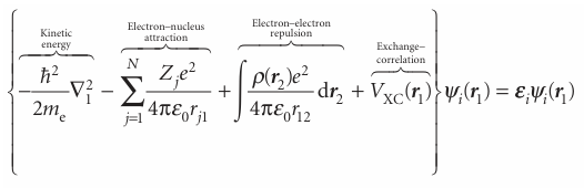 are calculated from the Kohn–Sham equations, which are found by applying the variation principle to the electron energy, and are like the Hartree–Fock equations except for a term VXC, which is called the exchange–correlation potential: