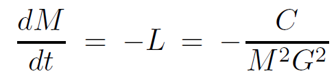 If we ignore the mass dependence of C, equation 1.15 can be integrated to find the time that the black hole survives before evaporating to zero mass. This evaporation time is evidently of order