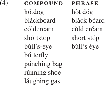 (i) A compound word normally contains only one main stress. In a phrase, however, each word may contain its own stress. (Note that English spelling is not always a reliable guide.)