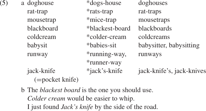 (iii) In a phrase, each individual word can take its normal range of affixes (5b). However, it is generally not possible to add extra suffixes to the first root of a compound in English, but only to the compound as a whole (5a).2