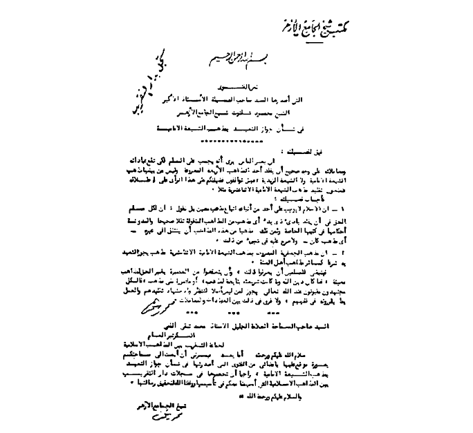 دفاع الشيخ محمود شلتوت عن الشيعة الإمامية