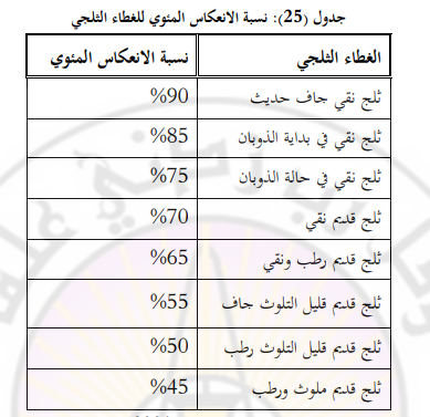 1 - سماكة الغطاء الثلجي تزداد درجة الانعكاس كلما كان الثلج أسمك.