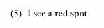 Observe that a red spot is a noun phrase (NP) with the count noun spot as its head. This is consistent with the fact that the red area is bounded within the field of vision (because the speaker can see the ‘edges’ of the red spot) which is equivalent to the scope of predication of the NP. Now imagine that the speaker approaches the wall and stands so close to it that the red spot fills the visual field. The speaker may now describe what he or she sees as follows: