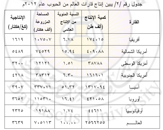 كما أن اختلاف مواسم جني المحاصيل الزراعية بين نصفي الكرة الشمالي والجنوبي يزيد من عمليات التبادل التجاري بين بلدان العالم والقارات تشغل قارة آسيا المرتبة الأولى في العالم بإنتاج الحبوب، إذ أنتجت مــا نسبته أكثر من (51%) من جملة الإنتاج العالمي من الحبوب عام 2012م، تلتها قارة أوروبا التي أنتجت ما يقرب من (16.5%) ، ثم قارة أمريكا الشمالية (16%) من جملة إنتاج العالم من الحبوب في عام 2012م.