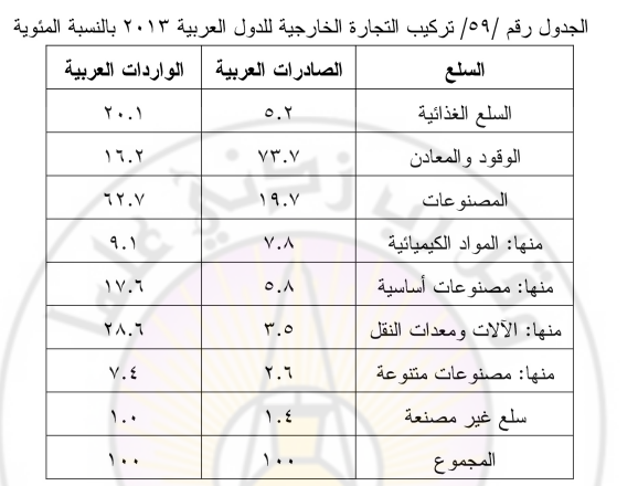 التركيب السلعي للتجارة الخارجية العربية
