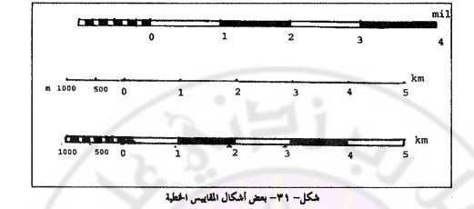 ـ يكتب فوق كل عمود من أعمدة التقسيم عدد الكيلومترات أو الأمتار التي تمثلها المسافات المحصورة بين الأعمدة وذلك ابتداء من الصفر باتجـــاه اليمين.