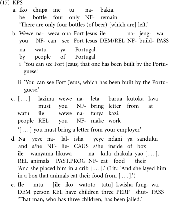 3 One might argue that na-bakia in (17a) is ‘‘underlyingly’’ a relative clause but one that is not formally marked. We did not find compelling evidence in support of such an analysis.