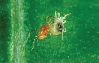 الأكاروس المفترس يتغذى على الأكاروس ذو البقعتين