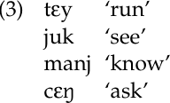 The stem in Bantu languages (also in the Niger-Congo family) may also consist of a root plus derivational suffixes (Hyman 1993; Mchombo 1993). For example, Mchombo shows that the Chichewa verb stem plus derivational affixes functions as a unit in that it may be nominalized (but units larger than the verb stem may not), undergo reduplication, and be used as the bare imperative. Chichewa is similar to Kujamaat Jóola in these respects. In addition, the Chichewa verb stem serves as the domain for a phonological process, tense–lax vowel harmony.