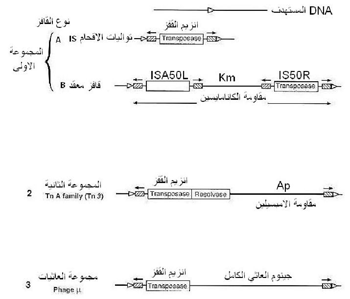الشكل 1 :اقحام القافزات المختلفة في الكروموسوم البكتيري