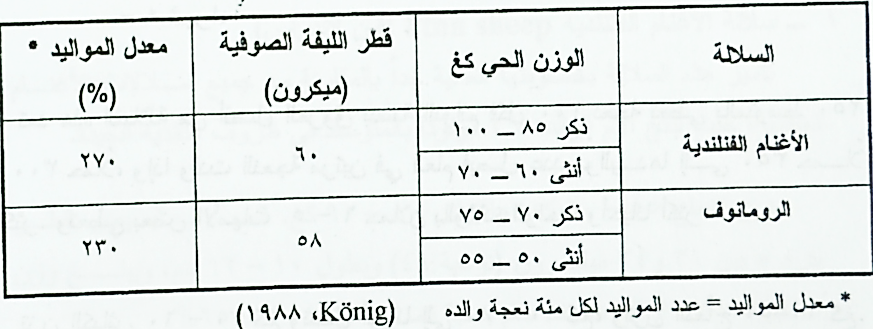 ويبين الجدول التالي أهم الصفات الانتاجية لأهم عروق الأغنام عالية الخصوبة.