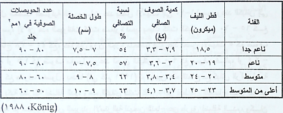 3. نسبة ألياف السفا إلى الألياف الوبرية 4:1 وحتى 10:1 والسفا أغلظ بــ 3-3,5 مرة من الوبر الذي تكون ثخانته 20-25 مايكرومتر.
