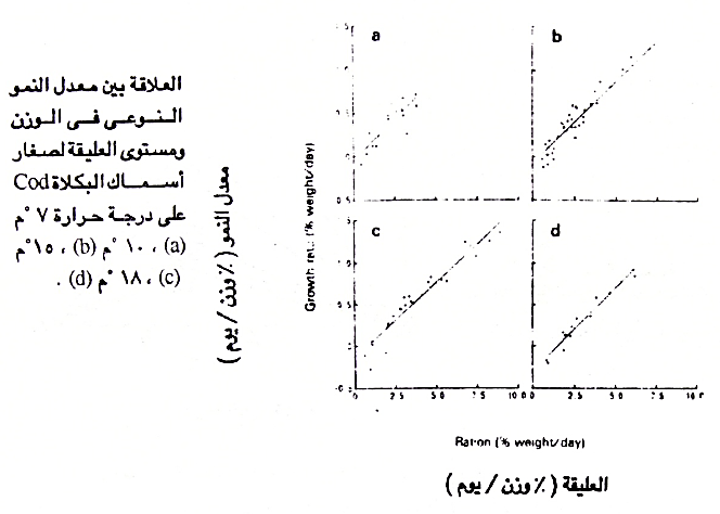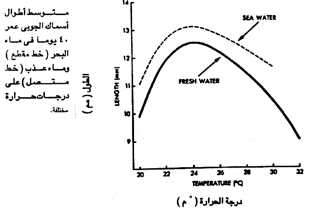 وعادة يكون النمو اعلى في المياه الدافئة عنه في المياه الباردة، وقد ينخفض النمو في اثناء الهجرة او التناسل، بل قد يكون سالبا عندما تنخفض طاقة الغذاء عن الاحتياجات المختلفة للسمك. وعلية فشكل مقاطع منحني النمو تتباين بتباين الانواع لاختلاف مواعيد هجرة وتكاثر كل نوع عن الاخر، أي انه ليس شرطا ان يزداد نمو كل الانواع صيفا او ربيعا، اذ قد تتناسل بعض الانواع في مواسم النمو (هذه) لأنواع اخرى.