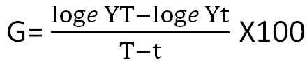 حيث ان (G) معدل النمو النوعي، (YT) الحجم النهائي عند الزمن (T) ، (Yt) الحجم الاولى عند الزمن (t) ، (Loge) اللوغاريتم الطبيعي.