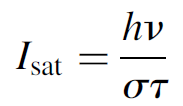 where g0 is the unsaturated gain of the amplifier, ρ the photon flux in the system, and ρsat is called the saturation flux. Either photon flux may be calculated from intensities (in W/m2) measured experimentally or calculated.