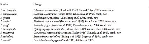 Table 1 Changes in the nomenclature of members of the genus Pseudomonas (Palleroni, 2005a, Euzéby, 2011).