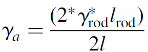 In this case the numerator evaluates to the (dimensionless) total loss for a round-trip through the rod which is then spread out across the length of the cavity (2l). In a solid-state laser this would not compensate for the index of refraction of the rod which leads to an apparent length (optically speaking) of n*rod lrod; but for most practical lasers the rod is much shorter than the total cavity length and so the cavity is mainly air with n =1.00: So now an overall distributed-loss coefficient (γr) can be used to describe the total cavity losses as