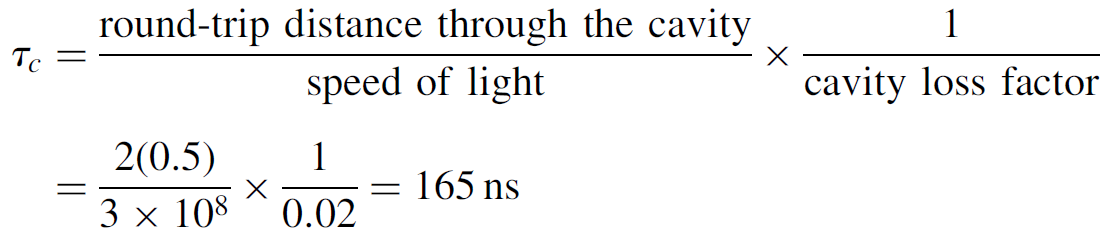 While the photon takes only 3.3 ns to traverse the entire 1-m round trip of the cavity, the probability of passing through the OC is low since it has high reflectivity. On average, then, a photon will make 50 such round trips before exiting the cavity.