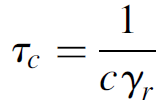 Because we have defined the cavity loss factor as a function of length (in m-1), the product of the loss factor with the speed of light (in m/s) defines the loss of photons per unit time (in s-1), so the expression for photon lifetime simplifies to