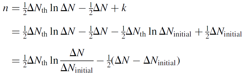 where k is a constant. To solve for the constant, we apply initial conditions in which there is no output (i.e., n = 0) just before the switch opens and the inversion is at its initial, peak value of ΔNinitial: