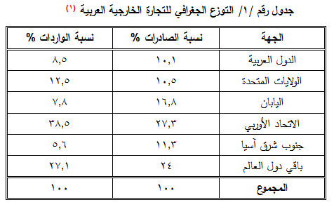 التوزع الجغرافي للتجارة الخارجية العربية