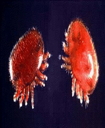 يصيب حلم الفاروا عادة الشغالات والذكور والملكات أحيانا حيث يمكن مشاهدتها عادة على منطقة الصدر أو على الجانب السفلي للبطن بين الحلقات.