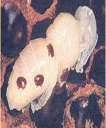 بعد إغلاق النخروب (عين سداسية) ومع استهلاك اليرقة للغذاء ، تلتصق الفاروا بجسم اليرقة وتتغذى على هيموليمف (دم) النحلة وبعد حوالي 60 ساعة من ختم (إغلاق) العين السداسية تضع بيضتها الأولى وبعد 30 ساعة تضع بيضتها الثانية ،وعادت تكون الأولى أنثى والثانية ذكر ويبلغ معدل ما تضعه أنثى الفاروا البالغة من الإناث في نخروب (عين سداسية) الإناث 1.8 وفي نخروب الذكر 2.7 أنثى بالغة ويتم تلقيح الإناث داخل النخروب.
