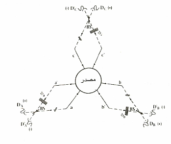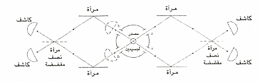 ويوضح الشكل نسقا يوجد به مصدر من نوع خاص جدا في المركز يبث ثلاثة جسيمات متعالقة في أن واحد ونظرا لأن هذه الجسيمات (أو الفوتونات) هي أجسام كمية، كما أنها متعالقة، فإن كل "ثلاثي جسيمي يمر من الفتحاتc, b, a ، معا وكذلك خلال الفتحات'c, 'b, 'a ، ولأنها تمر عن طريق تصميم الماسة الثلاثية، فإن كل جسيم يصطدم بمقسم أشعة (مرأة نصف مفضضة)، يمكن أن تتخذ الوضع L أو الوضعR .