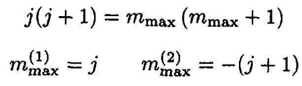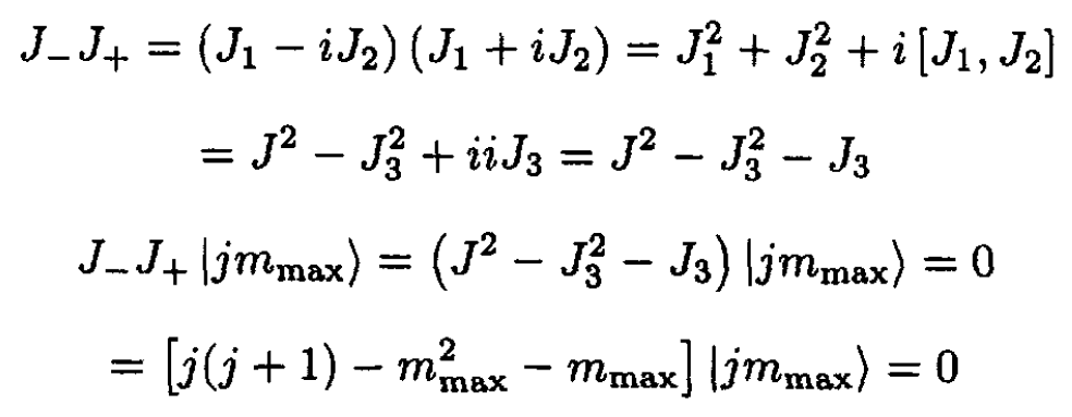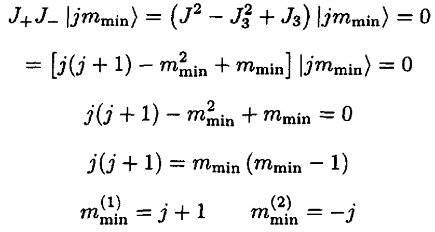 where Cmj± are the corresponding coefficients. As determined above, we know that j(j + 1) ≥ m2, so J± cannot be applied indefinitely to the state |jm〉; i.e., there must be an m = mmax, m = mmin such that
