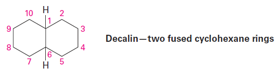 The final point we’ll consider about cycloalkane stereochemistry is to see what happens when two or more cycloalkane rings are fused together along a common bond to construct a polycyclic molecule—for example, decalin.