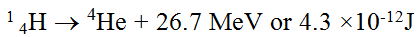 ان تحويل الهيدروجين الى هليوم يحول المادة الى طاقة . فعلى سبيل المثال :