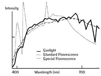 Special fluorescent lights more benevolent to human needs are available and mimic sunlight to produce a UV spectrum better matching the needs of these internal organs. Indeed, the lack of the required UV parts of the ambient light spectrum can lead to certain illnesses. Of course, the lack of vitamin D production in the skin can lead to rickets and other problems associated with the calcium and inorganic phosphate metabolism. Eskimos and other indigenous peoples obtain plenty of vitamin D from the fish oils in their diets.