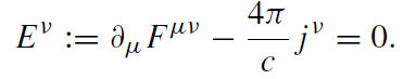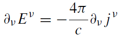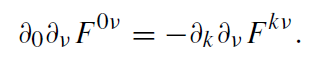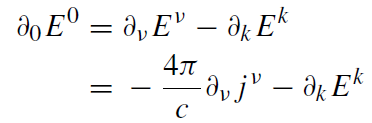 Again the right hand side involves only second time derivatives implying that the zero-component of (1.6) involves no second time derivatives. Hence the time component of (1.6) is merely a constraint on the initial data; clearly it is just Gauss's law ∇ · E − 4πρ = 0. Its change under time evolution according to Maxwell's equations is