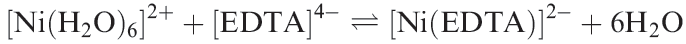 This is called the Irving–Williams series and is observed for a wide range of ligands. The trend is a ‘hump’ that peaks at Cu2+ (d9) and not at Ni2+ (d8) as might be expected from a consideration of LFSEs while the variation in LFSE values is a contributing factor, it is not the sole arbiter. Trends in stability constants should bear a relationship to trends in ionic radii (see Appendix 6); the pattern in values of rion for 6- coordinate high-spin ions is: Mn2+ > Fe2+ > Co2+ > Ni2+ < Cu2+ < Zn2+ We might expect rion to decrease from Mn2+ to Zn2+ as Zeff increases, but once again we see a dependence on the d n configuration with Ni2+ being smallest. In turn, this predicts the highest value of log βn for Ni2+. Why, then, are copper(II) complexes so much more stable than might be expected? The answer lies in the Jahn–Teller distortion that a d9 complex suffers; the six metal–ligand bonds are not of equal length and thus the concept of a ‘fixed’ ionic radius for Cu2+ is not valid. In an elongated complex such as [Cu(H2O)6]2+, there are four short and two long Cu_O bonds. Plots of stepwise stability constants for the displacement of H2O by NH3 ligands in [Cu(H2O)6]2+ and [Ni(H2O)6]2+ are shown in Figure 1.1; for the first four substitution steps, complex stability is greater for Cu2+ than Ni2+, reflecting the formation of four short (strong) Cu_N bonds. The value of logK5 for Cu2+ is consistent with the formation of a weak (axial) Cu_N bond; logK6 cannot be measured in aqueous solution.