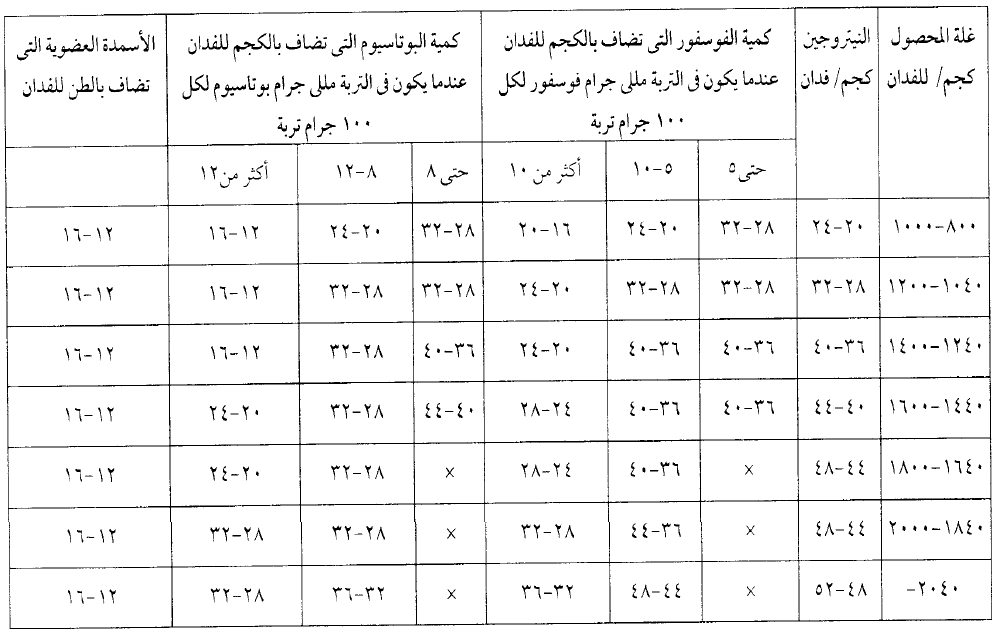 * فوسفور (فو2أ5) 12-16 كجم واحيانا 20 كجم.