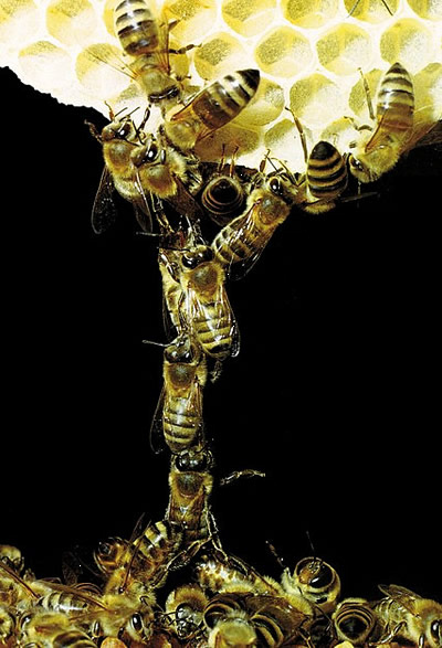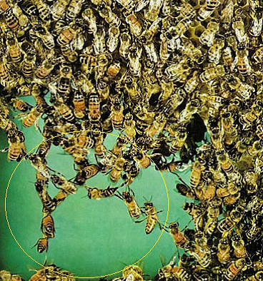 شكل يوضح طريقة تشابك النحل عند بناء القرص الشمعي
