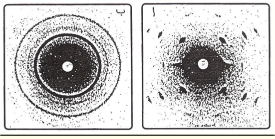 شكل (1) : صورة اشعة (X) لبوليمرمتبلور(أ) واخر غير متبلور