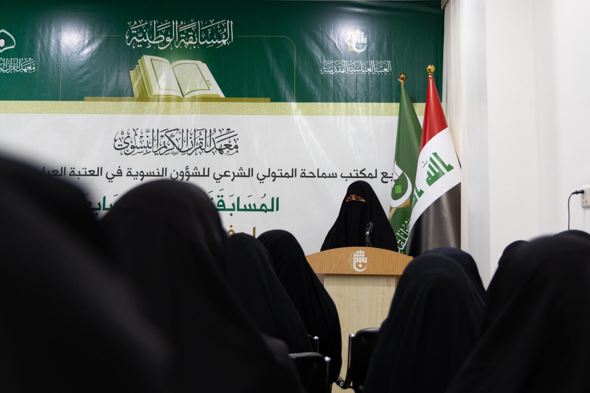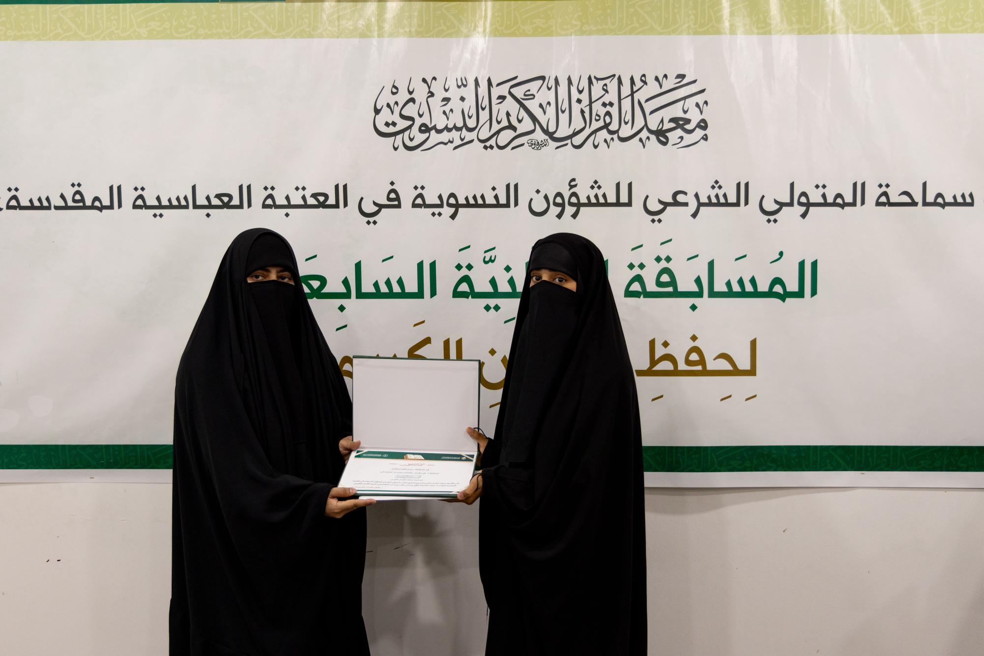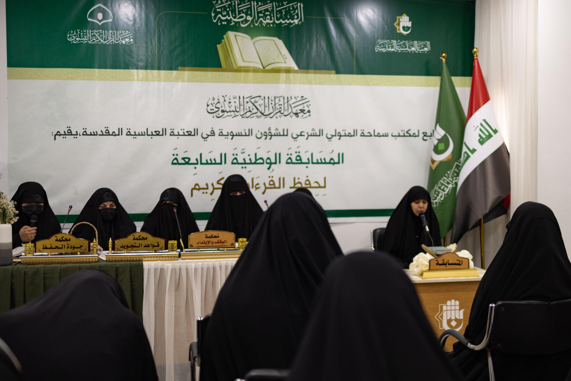 اختتم معهد القرآن الكريم النسوي التابع لمكتب المتولي الشرعي للشؤون النسوية في العتبة العباسية المقدسة، المسابقة الوطنية السابعة لحفظ القرآن الكريم. وقالت مسؤولة المعهد، السيدة منار الجبوري: إنّ هذه المسابقة تُعد من أبرز الأنشطة القرآنية التي يتبناها المعهد سنويًّا، لكونها تختص بالنخبة من حافظات القرآن الكريم من مختلف محافظات العراق، وتُقام بإشراف لجنة تحكيمية متخصصة من أستاذات المعهد لضمان الدقة والإنصاف في التقييم. من جانبها ذكرت مسؤولة الإعلام في المعهد، السيدة إسراء العكراوي: أنّ "معهد القرآن الكريم النسوي اختتم المسابقة الوطنية السابعة لحفظ القرآن الكريم، التي استهدفت الحافظات النخبة، وأُقيمت على مدى يومين وبمشاركة 37 حافظة من مختلف محافظات العراق تأهلن من مسابقة الفرقان التمهيدية التي نظمها المعهد في وقت سابق". وأضافت أنّ اختتام المسابقة أُجري عبر إقامة حفل يتضمن عددًا من الفعاليات القرآنية تقدمها فرقة نبع الجود وبراعم الكفيل، إلى جانب تلاوات قرآنية مباركة، وتكريم 9 حافظات للقرآن الكريم من الفائزات بالمراتب الثلاث الأولى لكل فئة.