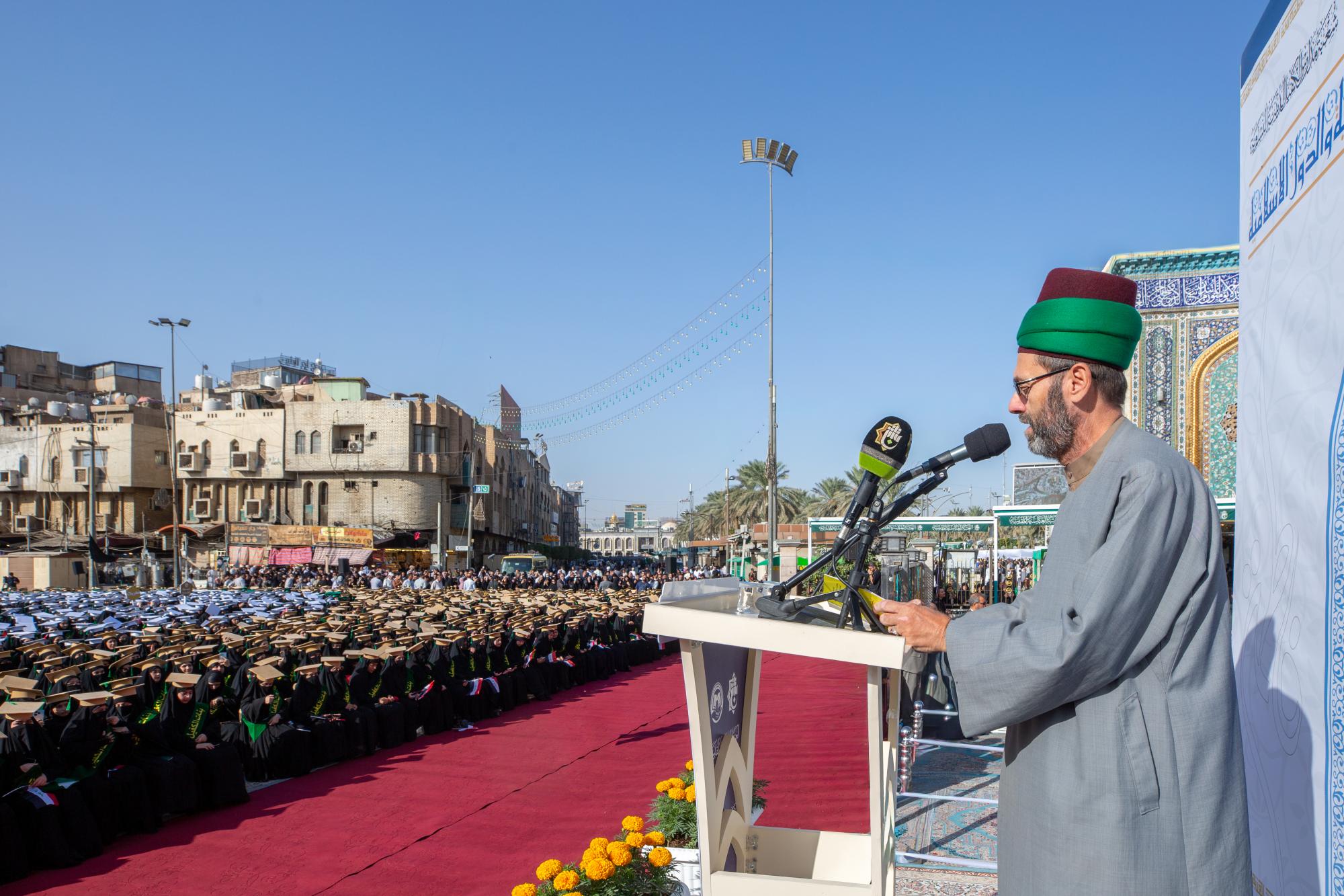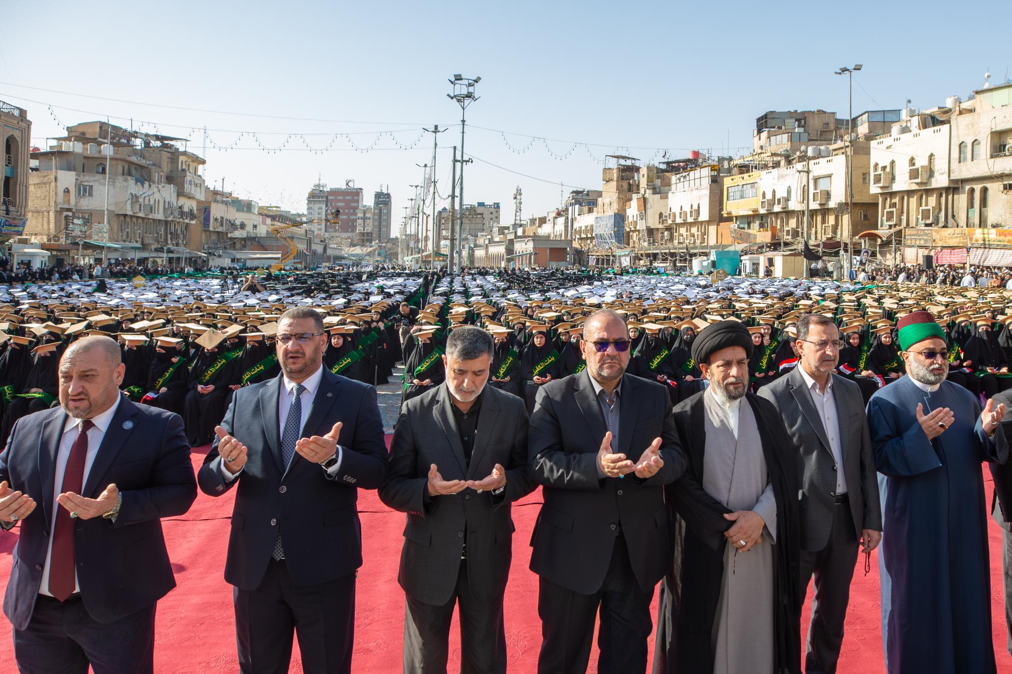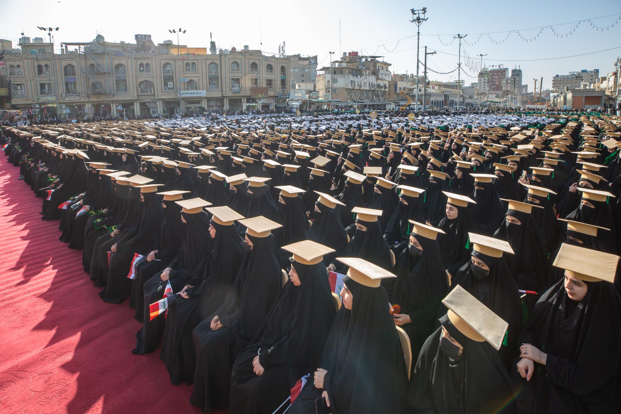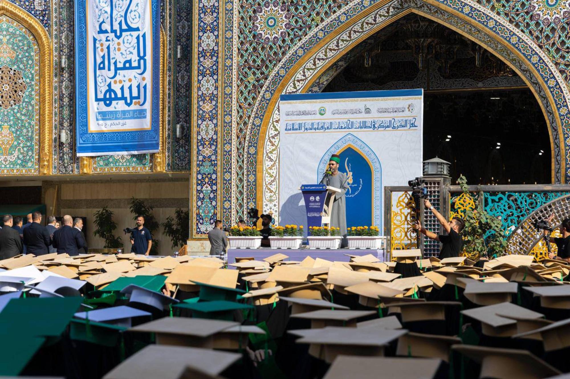 أدَّت الطالبات المشاركات في الحفل المركزي لتخرُّج طالبات الجامعات العراقية والدول الإسلامية التاسع، مراسمَ زيارة أبي الفضل العباس (عليه السلام)، عند باب قبلة مرقده الطاهر. وتنظّم الحفل شعبة مدارس الكفيل الدينية النسوية التابعة لمكتب المتولي الشرعي للشؤون النسوية في العتبة المقدسة، تحت شعار "من نور فاطمة (عليها السلام) نضيء العالم" وللعام الدراسي 2024- 2025م. وأُقِيمَت مراسم الزيارة لمرقد أبي الفضل العباس (عليه السلام)، ضمن فعاليات اليوم الثاني من الحفل، التي تضمَّنت فقرات متعدِّدة، منها ترديد قسم التخرُّج وعهد الولاء للوطن، ومسيرة الطالبات المشاركات فيه بمنطقة بين الحرمين الشريفين.