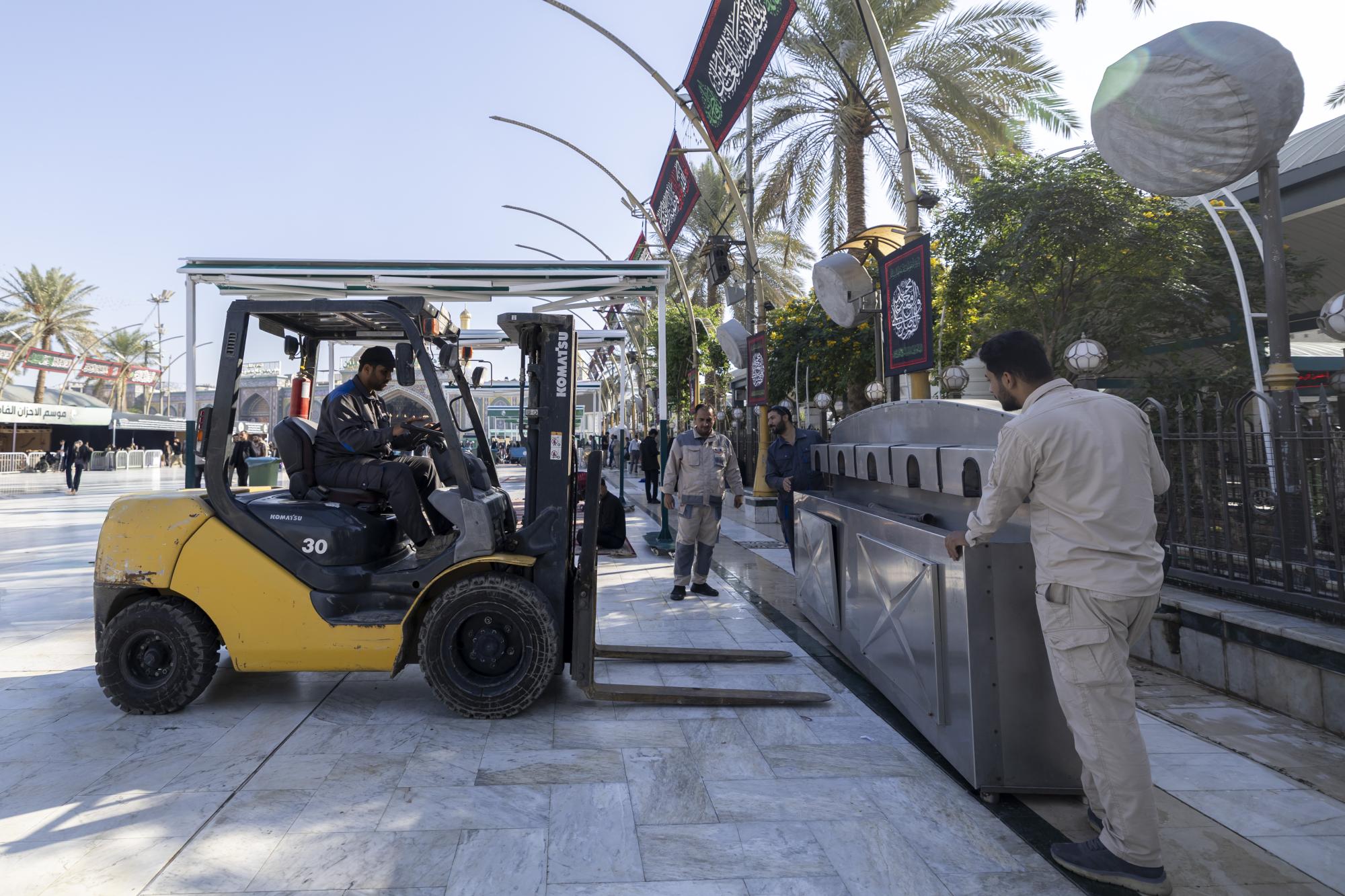 يواصل قسم بين الحرمين الشريفين في العتبة العباسية المقدسة تنفيذ المرحلة الأولى من مشروع استبدال مناهل مياه الشرب في الساحة الوسطية، ضمن جهود تطوير الخدمات المقدمة لزائري مرقدي الإمام الحسين وأخيه أبي الفضل العباس (عليهما السلام). وقال مسؤول الوحدة الفنية في شعبة الصيانة العامة التابعة للقسم، السيد علي محمد صاحب، إن "الملاكات الفنية تواصل رفع المناهل القديمة المصنوعة من مادة الستيل واستبدالها بأخرى جديدة من المرمر"، مشيراً إلى أنَّ "المناهل الجديدة ذات تصميم مدمج لا يشغل مساحة كبيرة، وتحتوي على ثلاثة مصبات مياه موزعة على محاور مختلفة لتسهيل الاستخدام".